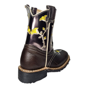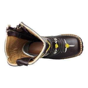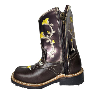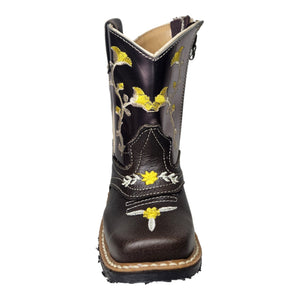Botas Jr Rodeo Piel Flor Amarilla Tubo Brilloso