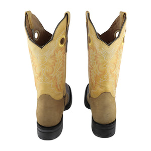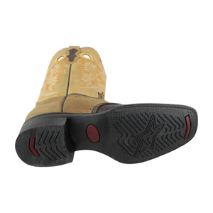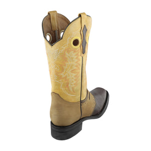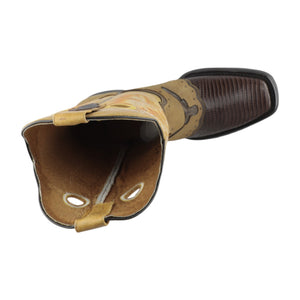 Estas botas estilo rodeo de la marca El General combinan tradición, carácter y resistencia. Elaboradas en piel de res con grabado tipo lizard en la chinela, ofrecen un diseño exótico y elegante. El contraste del tubo en tonos claros con la parte frontal en color chocolate las hace destacar en cualquier ocasión. Cuentan con horma Rodeo, suela de hule antiderrapante y tacón cómodo que brinda seguridad en cada paso. Un bordado llamativo en el tubo complementa este diseño ideal para el uso diario o eventos western. Producto orgullosamente mexicano.