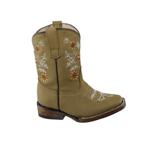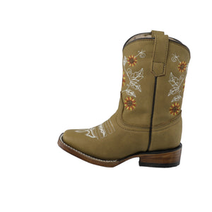 Descubre el estilo único de nuestras Botas Rodeo Niña Girasoles. Con un diseño encantador que combina un elegante color miel con vibrantes flores y varios girasol, estas botas son perfectas para cualquier pequeña amante de la moda. Su suela vaqueta garantiza comodidad y durabilidad, ideal para aventuras diarias.