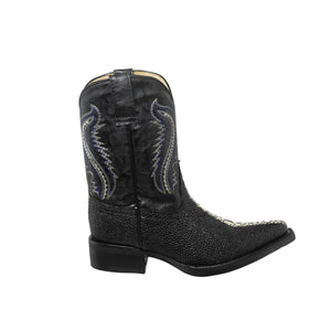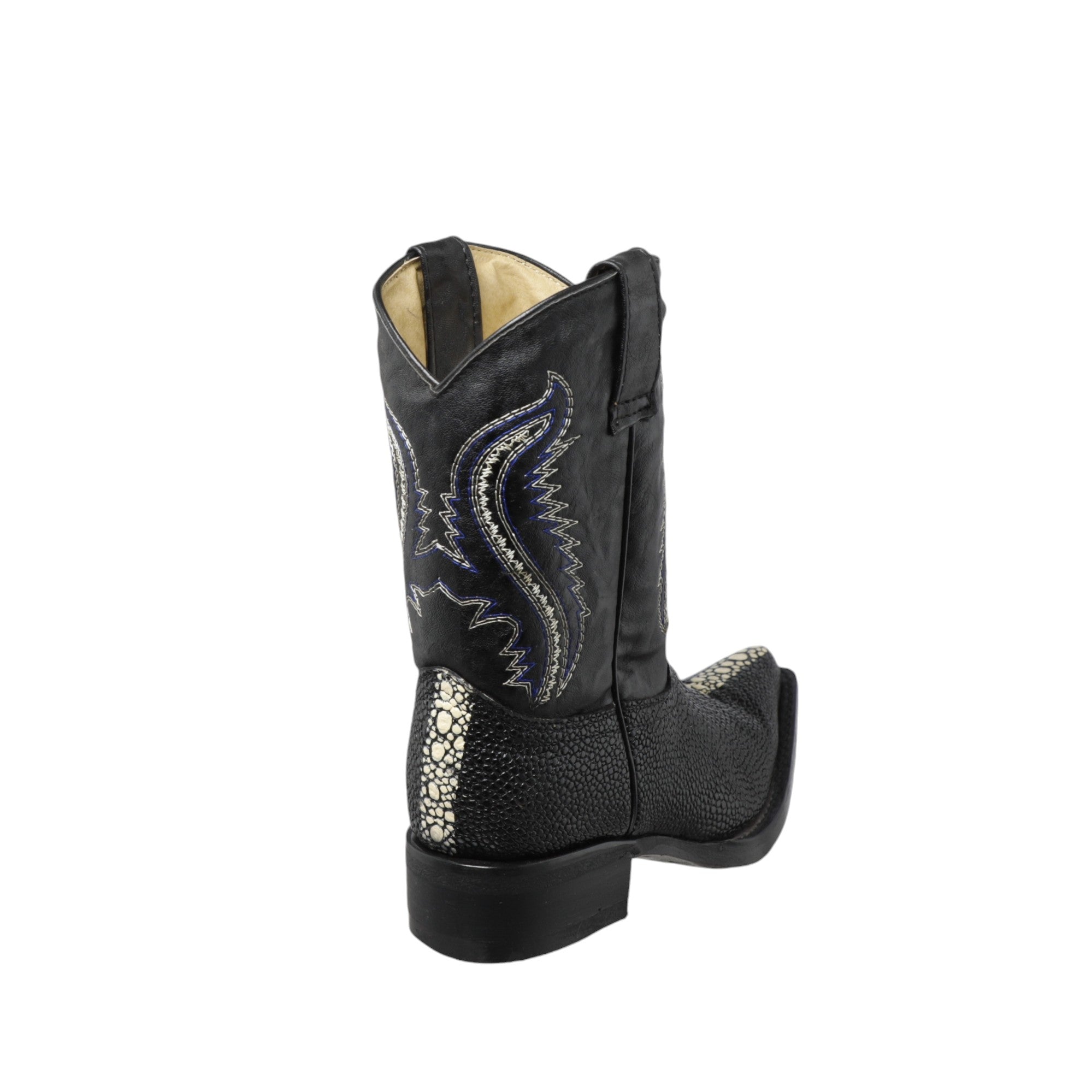 Con un acabado en imitación de mantarraya y detalles bordados en la caña, estas botas no solo lucen increíbles, sino que también ofrecen una suela de vaqueta resistente que asegura estabilidad en cada paso. Ideales para ocasiones especiales, eventos familiares o simplemente para que tu hijo luzca como todo un vaquerito en el día a día.