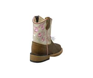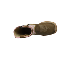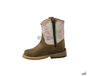 Botas Vaqueras JR Niña Piel Bordadas Chatas Tubo Rustico