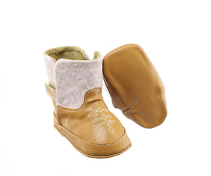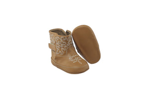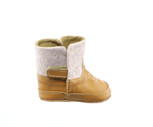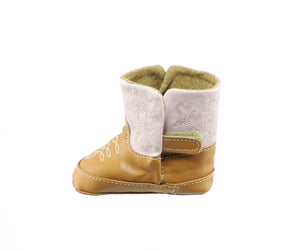 Las botas vaqueras para bebés recién nacidos con velcro son las botas perfectas para su pequeño. Con una suela suave y un forro de piel, estas botitas permiten que el pie de su bebé se desarrolle naturalmente, mientras que proporciona una protección adecuada en todo momento. Además, son prácticas y fáciles de poner, lo que significa que no habrá necesidad de luchar al tratar de ponerlas a su bebé. Cada par está hecho a mano por expertos artesanos mexicanos.