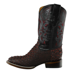 ¡Luce un estilo atrevido y exclusivo con las Botas Vaqueras de Piel Original de Pitón Bulldog Cherry! Estas botas de alta gama combinan la elegancia y autenticidad de la piel de pitón en un impactante tono cherry, creando una pieza única y llena de carácter. Cada detalle en el grabado y el bordado realza la textura exótica de la piel, mientras que el contraste de colores en el tubo añade un toque audaz y sofisticado.