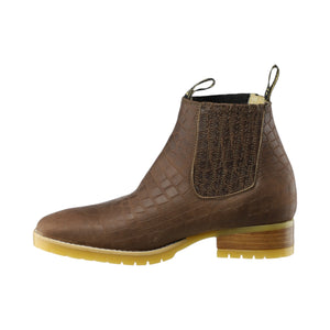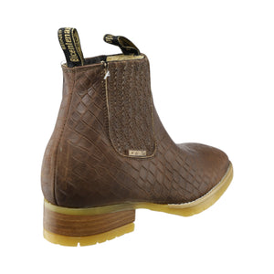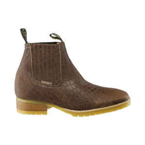 ¡Impacta con un estilo auténtico y sofisticado! El Botín Charro en Imitación Panza de Cocodrilo Bulldog combina lo mejor de la moda tradicional con un toque exótico. Su textura que imita la piel de cocodrilo le da un carácter único, mientras que la suela tipo tractor en tono ámbar añade un toque moderno y asegura tracción y durabilidad en cualquier terreno.