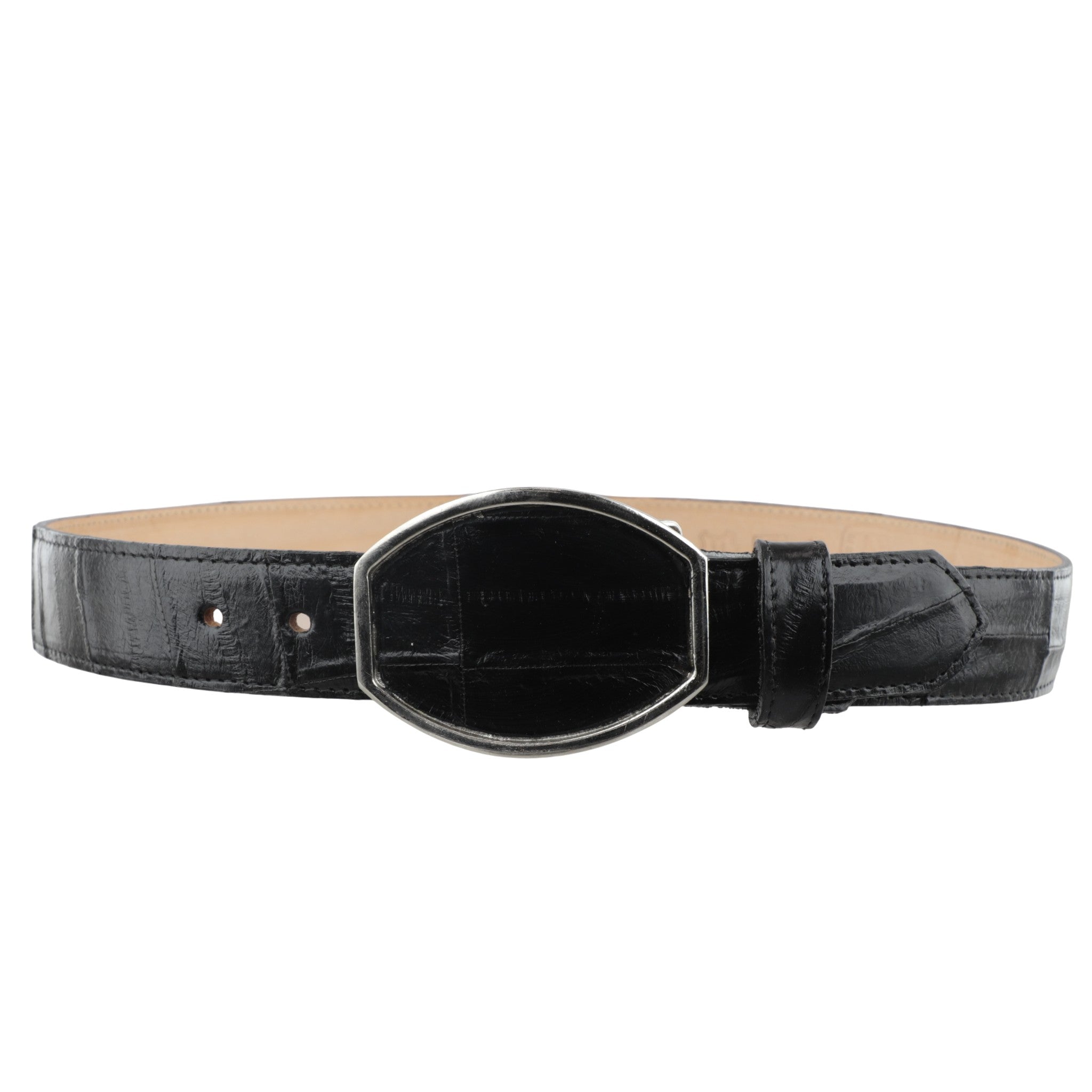 Este cinturón exótico de anguila para hombre es la elección perfecta si buscas un cinto vaquero negro de piel original que refleje tu carácter y buen gusto.